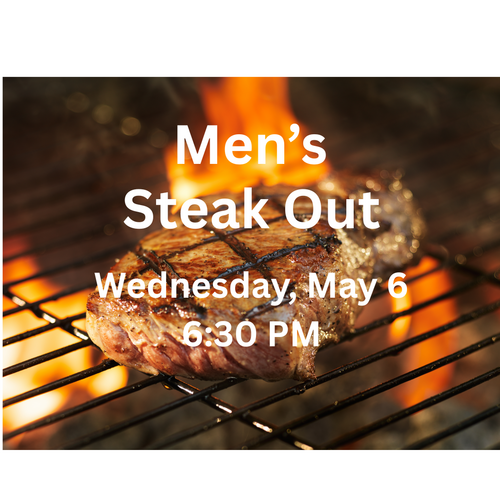 Our men will get together on Wednesday, May 6 at 6:30 p.m. for a steak dinner and Bible teaching. Click below to learn more and register.