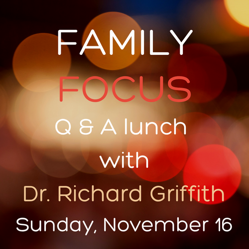 Our parenting series will be Sunday, November 9 and Sunday, November 16. On the 16th we will have a special guest speaker, Dr. Richard Griffith. Stay afterwards for a Q & A lunch. Childcare will be provided. Registration is required.